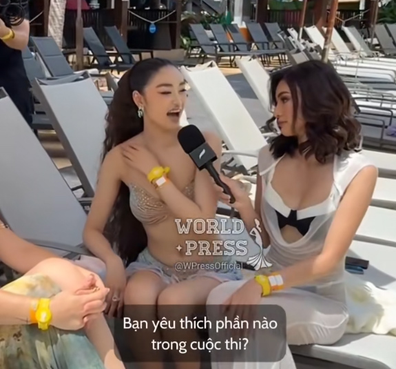 Trang fanpage của World Press đăng tải đoạn video ghi lại khoảnh khắc Yến Nhi trong trang phục đồ tắm và được Miss Grand Philippines – Emma Mary Tiglao bất ngờ tiến đến phỏng vấn. Video hiện được chia sẻ rộng rãi trong cộng đồng mạng Việt Nam.