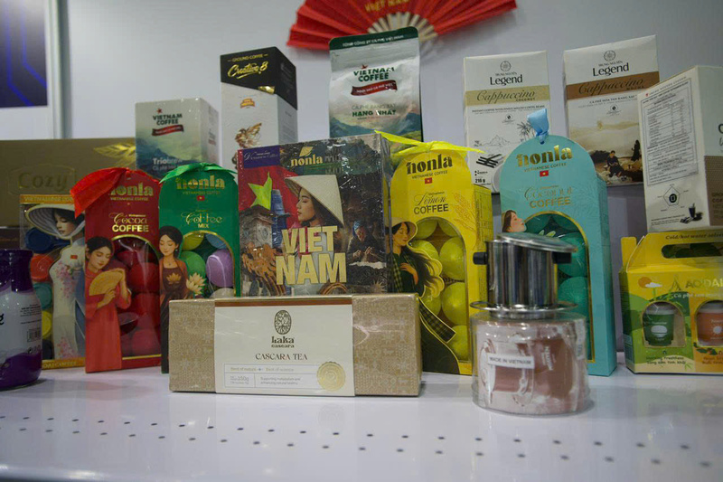 Sản phẩm của một số thương hiệu lớn được trưng bày và giới thiệu tại gian hàng gồm: Vina Café, Trung Nguyên, nón lá Việt Nam…, nước ngọt và trái cây sấy của Danny Green, thực phẩm ăn liền Vifon, sản phẩm thân thiện môi trường của HTX nông nghiệp Sông Hồng, trà Cozzy, trà Việt Thảo Nhiên…