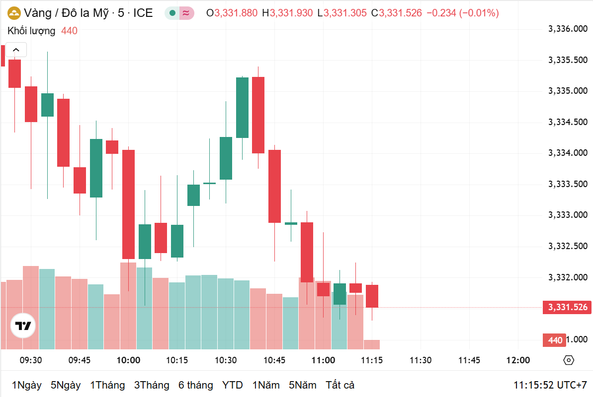 Thời điểm 10h50' hôm nay (ngày 22/8, giờ Việt Nam), theo Kitco.com, giá vàng thế giới giảm 6,60 USD, hiện đứng ở mức 3.331 USD/ounce. Quy đổi theo tỷ giá Vietcombank, mức giá này tương đương khoảng 106,7 triệu đồng/lượng.