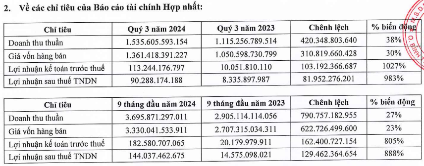Kết quả, Haxaco đạt lợi nhuận trước thuế 113 tỷ đồng, tăng hơn 1.027% so với cùng kỳ năm ngoái. Lợi nhuận sau thuế đạt 90 tỷ đồng, tăng 983% so với mức chỉ 8 tỷ đồng của quý III/2023.