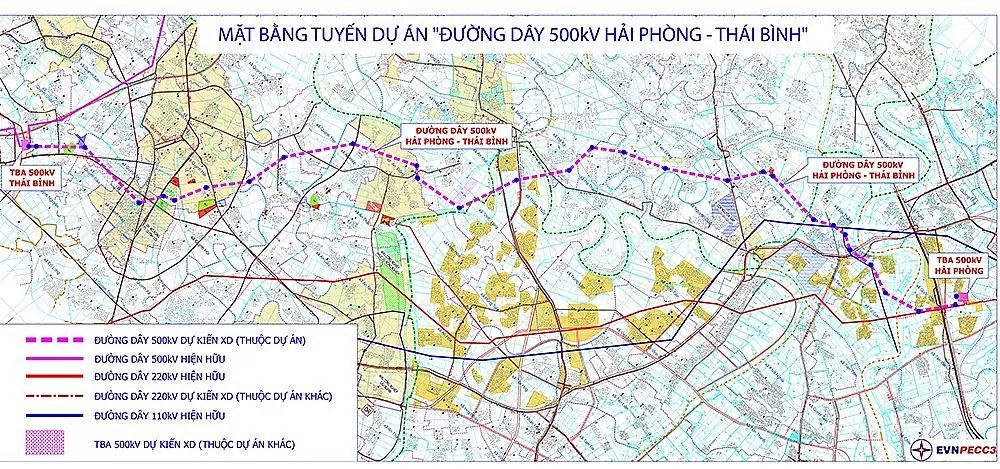 Mặt bằng tuyến Đường dây 500kV Hải Phòng - Thái Bình