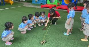 Hoạt động vui chơi ngoài trời của học sinh Trường Mầm non Hoa Hồng.