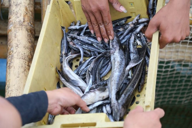 Cá nuôi lồng ở Quảng Bình chết bất thường. Ảnh: Văn Nhi