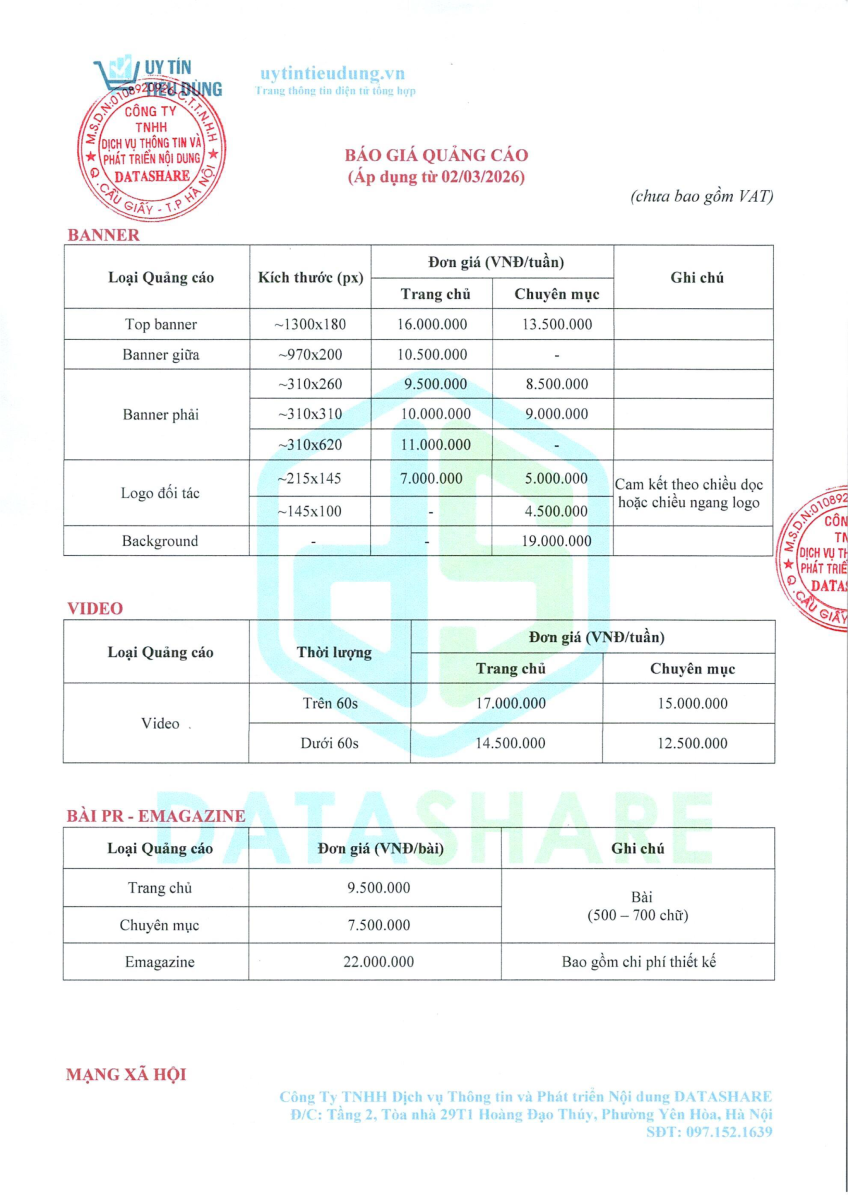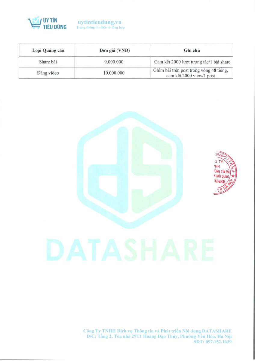 CÔNG TY TNHH DỊCH VỤ THÔNG TIN VÀ PHÁT TRIỂN NỘI DUNG DATASHARE