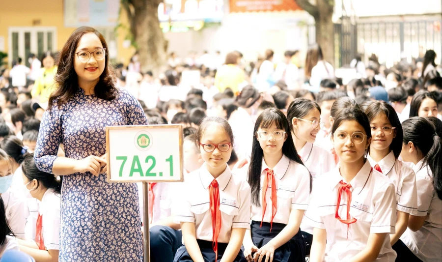 Cô - trò Trường THCS Ngô Sĩ Liên (Hoàn Kiếm, Hà Nội). Ảnh: NVCC |
