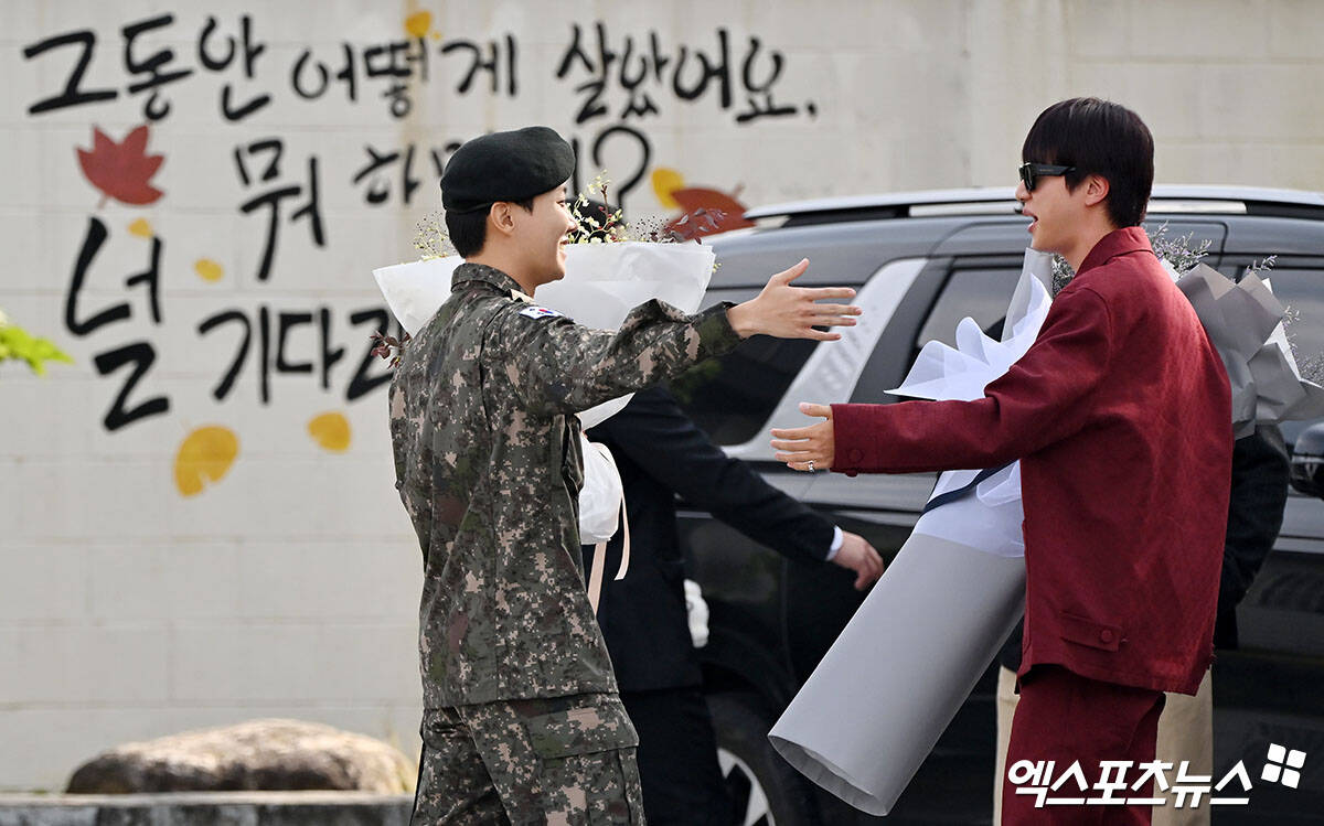Anh cả BTS Jin đến đón J-Hope xuất ngũ. Ảnh: Naver