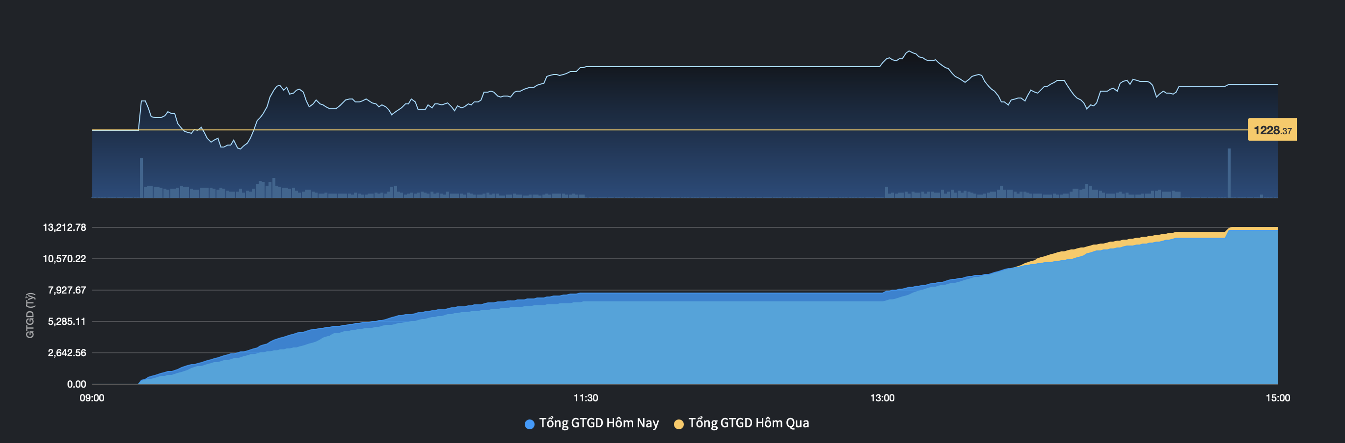 Chỉ số VN-Index hôm nay tiếp tục diễn biến tích cực khi tăng hơn 12 điểm cùng thanh khoản đi ngang. Dòng tiền thông minh tìm đến nhóm cổ phiếu ngân hàng, điện, bán lẻ...