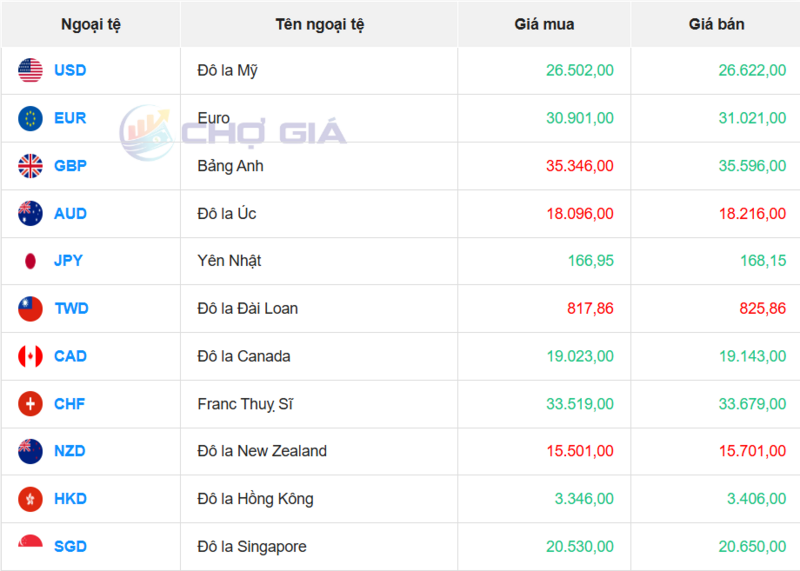 Ngân hàng HSBC đang bán chuyển khoản Đô la Mỹ với giá thấp nhất là: 1 USD = 26.097 VND
