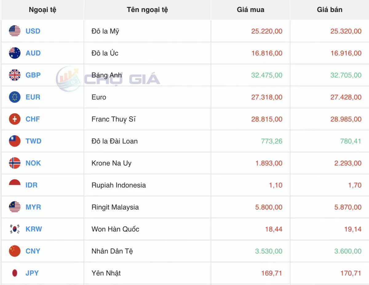Tỷ giá chợ đen (VND/JPY) | 169,71 | 170,71 | -0,39 | -0,59 |