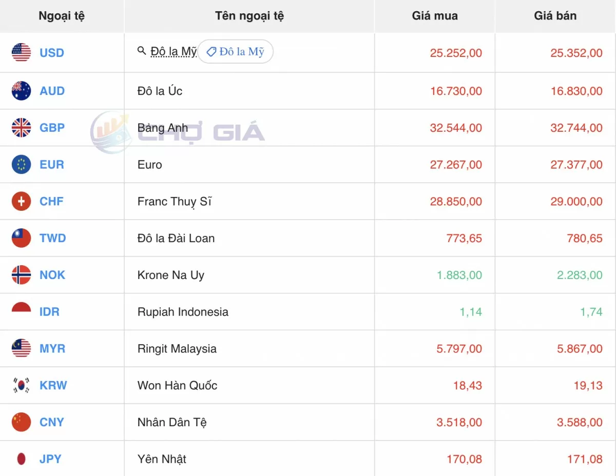 Ngân hàng | Mua | Bán | Mua | Bán |