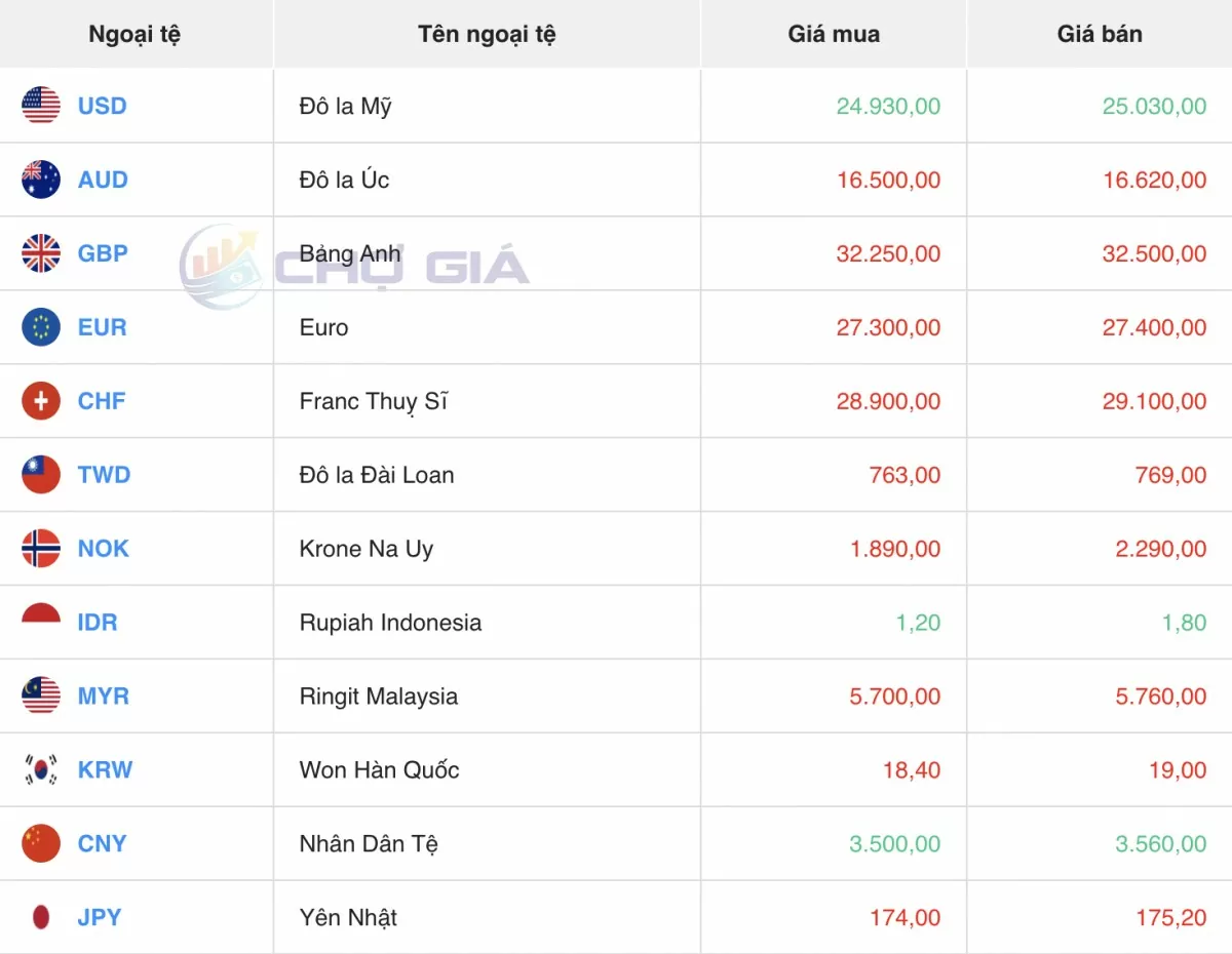 Ngoại tệ | Mua | Bán | ||