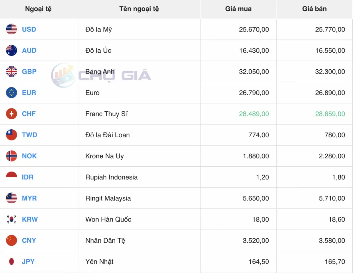 | Ngân hàng | Mua | Bán | Mua | Bán |
