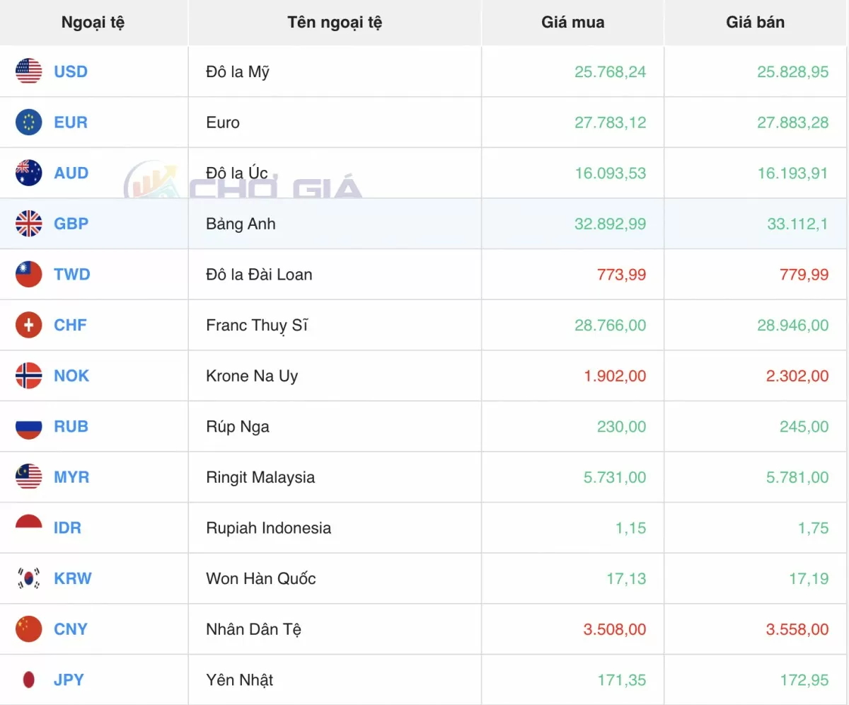 Ngoại tệ | Mua | Bán | ||