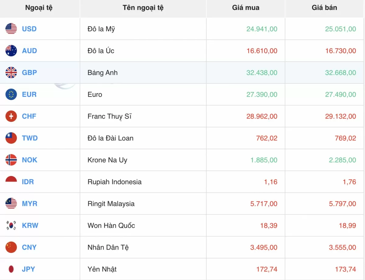 Ngân hàng | Mua | Bán | Mua | Bán |