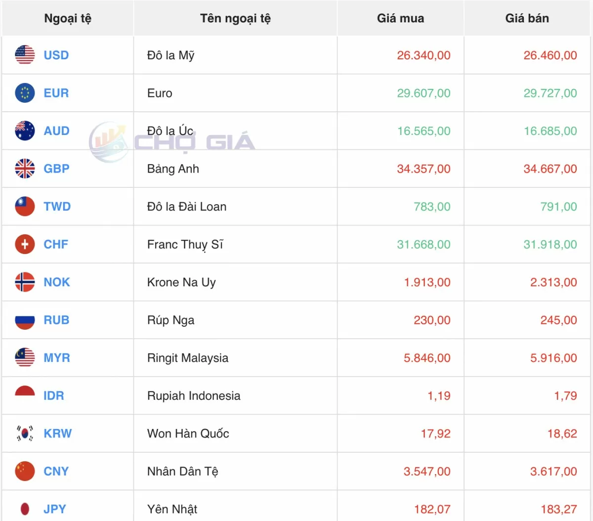 Dollar Mỹ | USD | 25,760 | 25,760 | 26,120 |