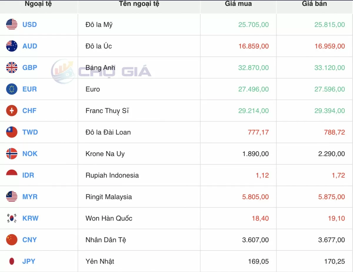 Tỷ giá chợ đen (VND/JPY) | 169,05 | 170,25 | +0,63 | +0,53 |