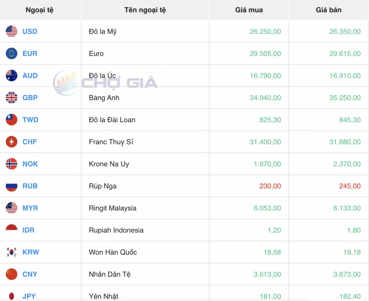 | Franc Thụy Sỹ | CHF | 30,914 | 31,010 | 31,863 |
