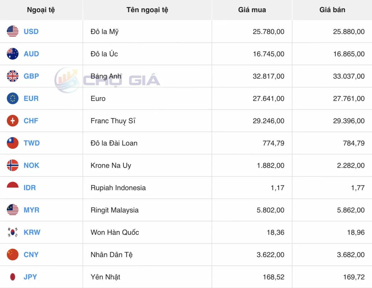 Ngân hàng | Mua | Bán | Mua | Bán |
