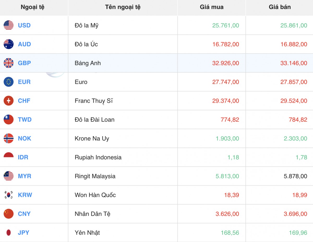 Ngân hàng | Mua | Bán | Mua | Bán |