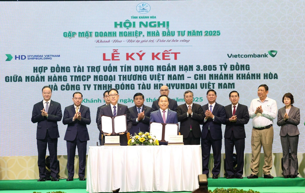 Tại Hội nghị, Vietcombank chính thức ký cam kết tín dụng với các doanh nghiệp có quy mô lớn, đóng vai trò chủ lực trong phát triển công nghiệp, logistics và xuất khẩu của tỉnh Khánh Hòa. Đặc biệt, Vietcombank cam kết tài trợ tín dụng lên đến 3.800 tỷ đồng cho Công ty TNHH đóng tàu HD Hyundai Việt Nam - một trong những doanh nghiệp FDI lớn, có nhiều đóng góp vào xuất khẩu, tạo việc làm và chuyển giao công nghệ cho khu vực miền Trung. Đây là minh chứng cho nỗ lực của Vietcombank trong việc kết nối nguồn lực tài chính với các dự án đầu tư trọng điểm, góp phần thúc đẩy tăng trưởng kinh tế - xã hội tại tỉnh Khánh Hòa và khu vực Nam Trung Bộ. Sự kiện này thể hiện cam kết đồng hành, hỗ trợ của Vietcombank với cộng đồng doanh nghiệp trong việc thúc đẩy phục hồi và phát triển kinh tế. Đây cũng là dịp để các bên cùng chia sẻ tầm nhìn hợp tác chiến lược trong giai đoạn mới.