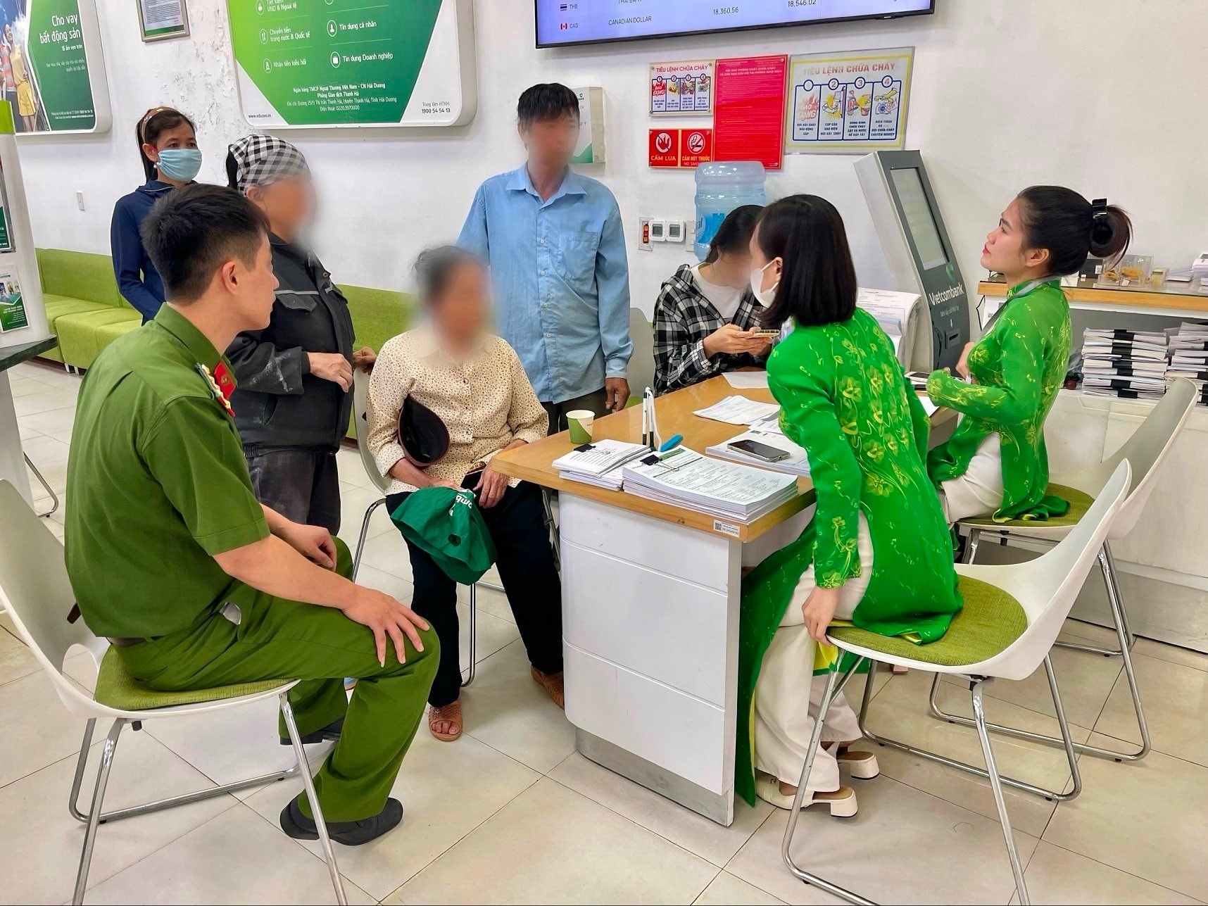 Tuy nhiên, nhận thấy cụ có nhiều biểu hiện bất thường, cán bộ và nhân viên ngân hàng đã nhanh chóng trao đổi với Công an thị trấn Thanh Hà để xác minh trước khi thực hiện giao dịch.