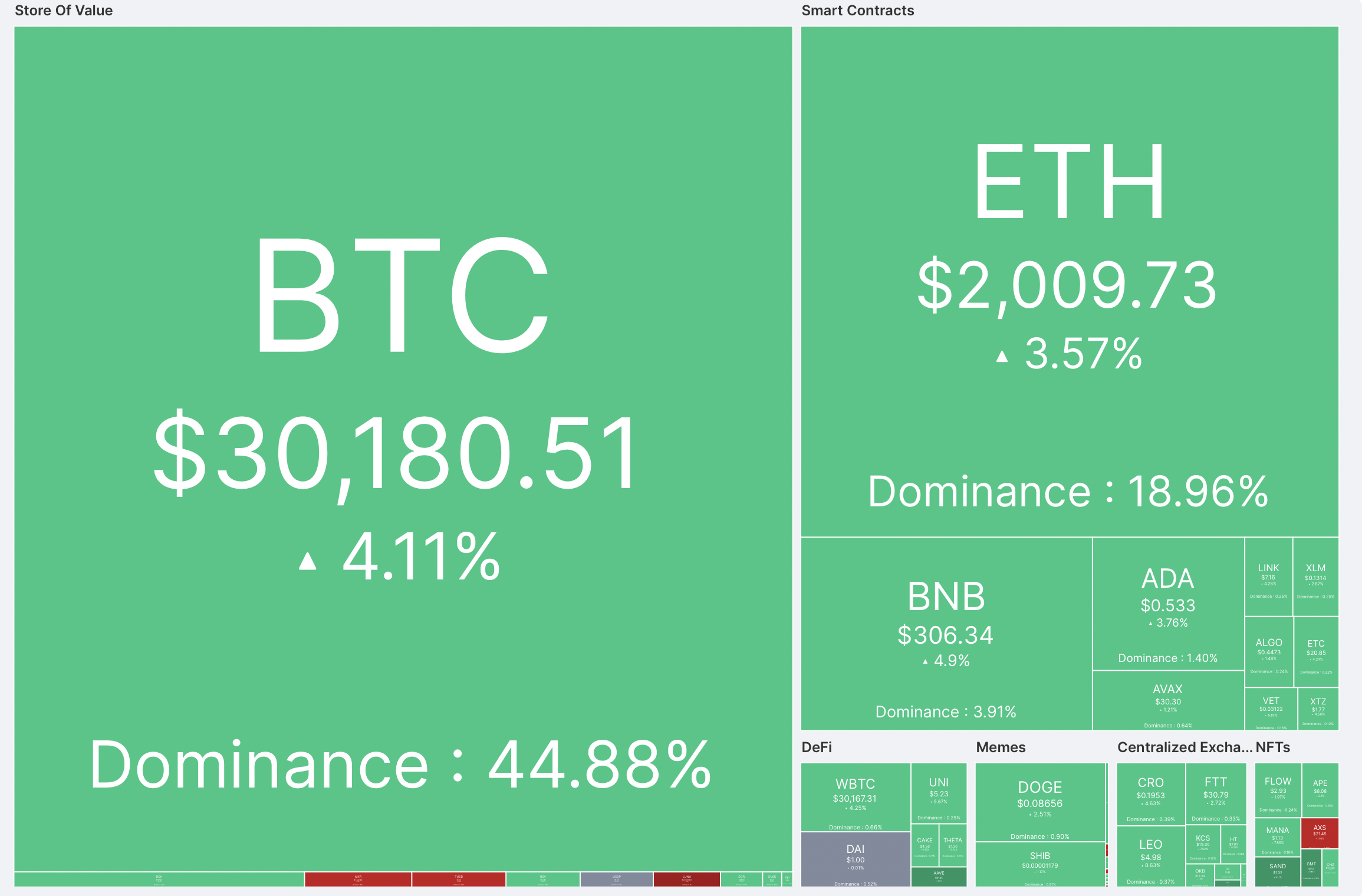 Trên thị trường tiền điện tử, đà hồi phục đang trở lại với sắc xanh áp đảo. Đồng Bitcoin, Ethereum, Binance hay ADA đều tăng thêm từ 3 - 4%.