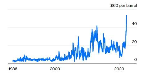 Từ năm 1985 đến 2021, mức độ lợi nhuận thường đạt trung bình khoảng 10,50 USD/thùng. Ngay cả giai đoạn 2004 đến 2008, giai đoạn được xem là hoàng kim của quá trình tinh chế, mức lợi nhuận chưa bao giờ vượt quá 30 USD/thùng còn thông thường, nó hiếm khi vượt qua mức 20 USD. Tuy nhiên vào tuần trước, mức lợi nhuận đã tăng lên cao kỷ lục gần 55 USD.