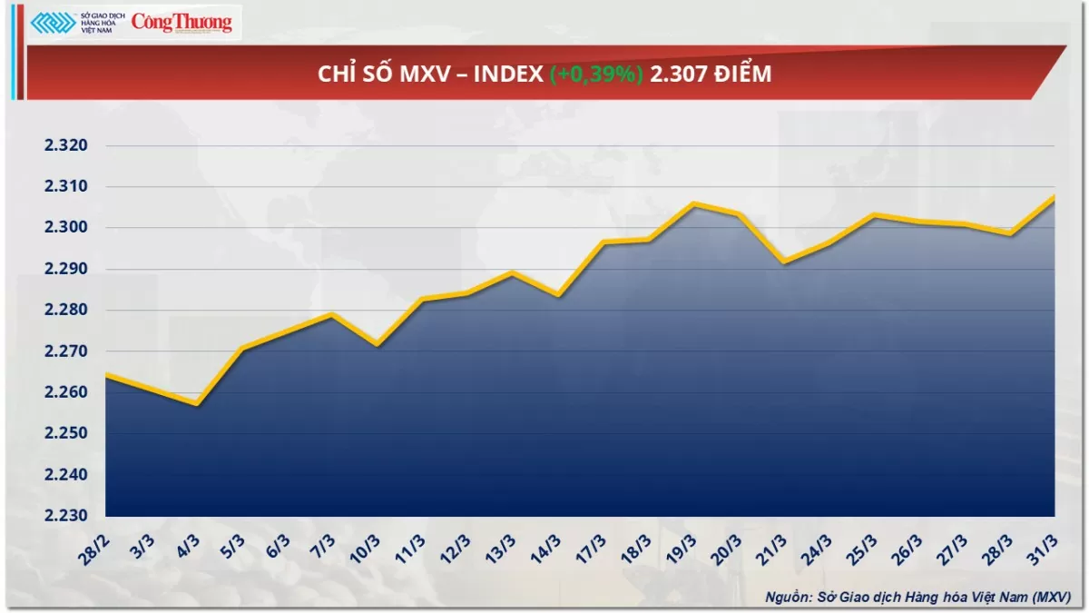 Ở chiều ngược lại, triển vọng tiêu thụ suy yếu gây sức ép lên hầu hết giá các mặt hàng kim loại. Đóng cửa phiên giao dịch, lực mua chiếm ưu thế đã hỗ trợ chỉ số MXV-Index tăng gần 0,4% lên mức 2.307 điểm.