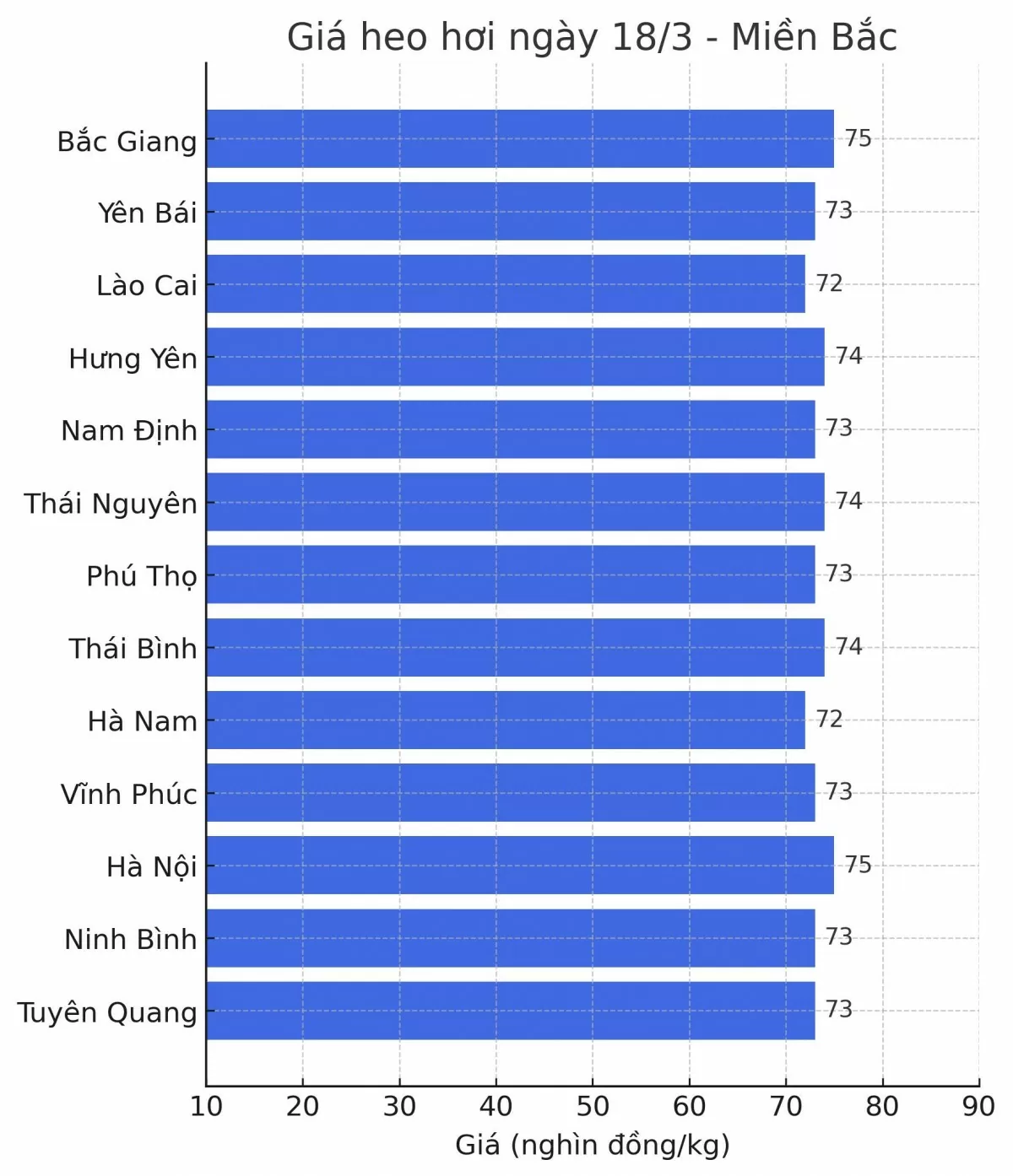 Biểu đồ giá heo hơi tại các tỉnh miền Bắc ngày 18/3. |