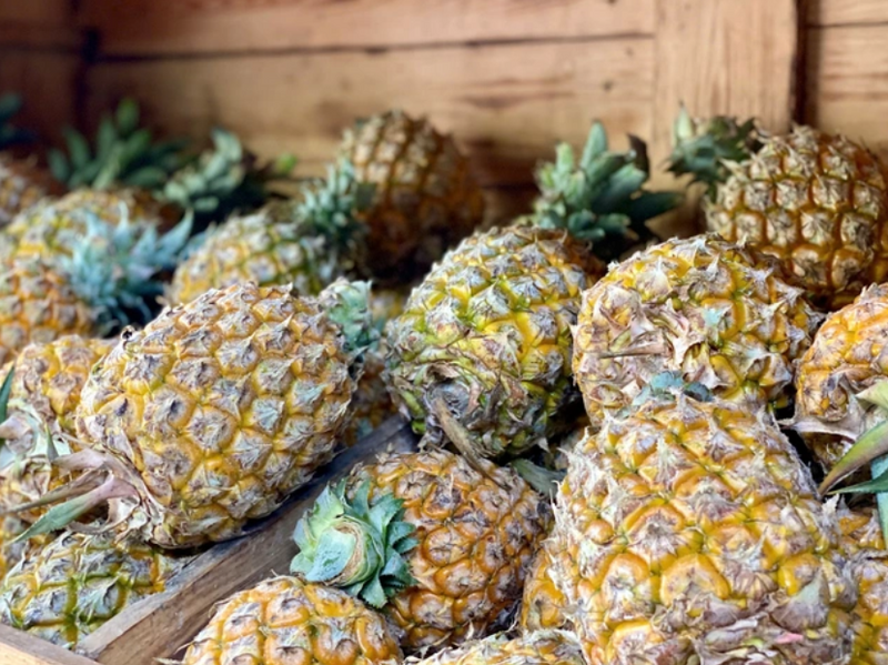 Giá dứa đầu vụ bán sỉ 15 nghìn đồng/quả và bán lẻ là 20 nghìn đồng/quả. Ảnh minh hoạ