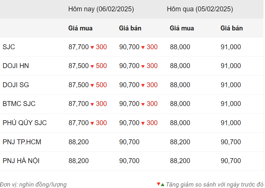 Phiên sáng ngày 6/2, thị trường vàng trở nên trầm lắng sau đợt tăng kỷ lục vào hôm qua. Giá vàng miếng SJC giảm 300.000 - 500.000 đồng/lượng, hiện đã mất mốc 91 triệu đồng/lượng.