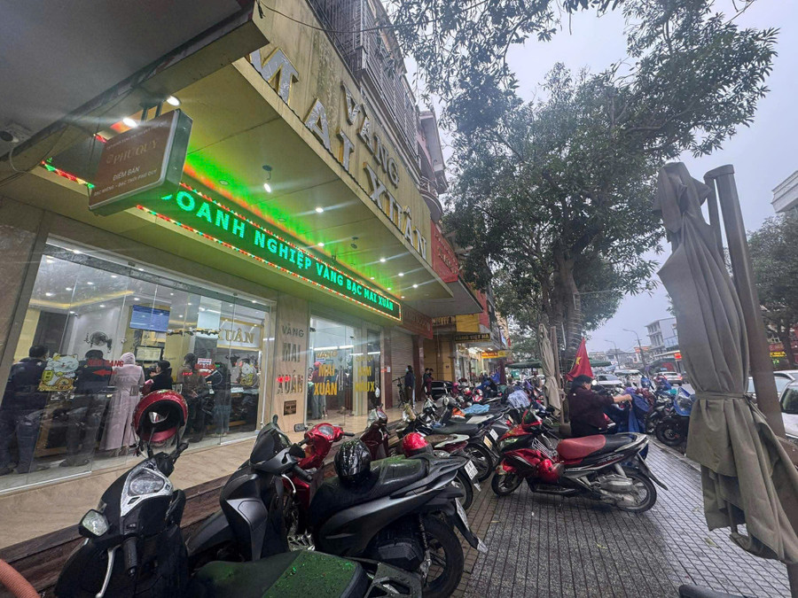 Khu vực kinh doanh vàng quanh chợ Hà Tĩnh tấp nập người mua bán; một bộ phận tranh thủ chốt lời khi giá cao, số khác đặt cọc sớm để tránh biến động trong ngày chính lễ.