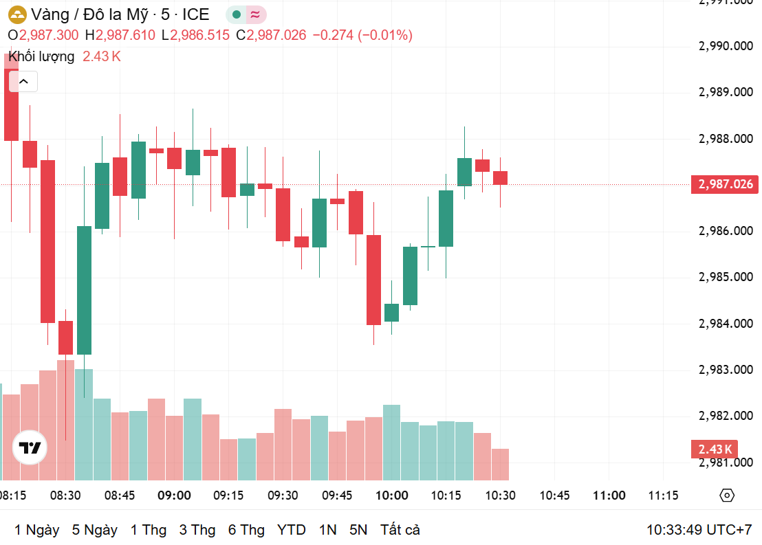Trên thị trường quốc tế, cập nhật thời điểm 10h45' ngày 13/3 (giờ Việt Nam), giá vàng thế giới ở mức 2.987 USD/ounce, tăng 48,3 USD so với phiên trước. Quy đổi theo tỷ giá tại Vietcombank, giá vàng vào khoảng 92,6 triệu đồng/lượng (đã bao gồm thuế, phí). Như vậy, với mức giá 95,6 triệu đồng, vàng miếng đang cao hơn giá vàng thế giới 3 triệu đồng/lượng.
