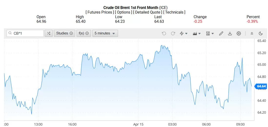 Ghi nhận trên Oilprice lúc 4h30 ngày 16/04/2025 (theo giờ Việt Nam), giá dầu Brent ở mốc 64,64 USD/thùng, giảm 0,39% (tương đương giảm 0,25 USD/thùng).