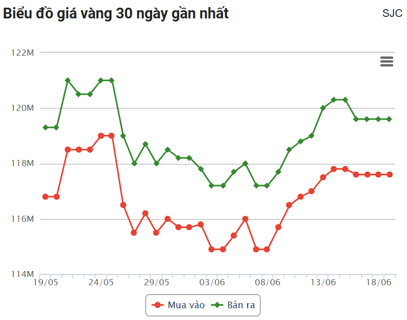 Trong bối cảnh giá vàng thế giới liên tục biến động, phiên sáng ngày 19/6, giá vàng miếng SJC và vàng nhẫn có diễn biến ổn định dưới mốc 120 triệu đồng/lượng. Đây là phiên thứ 3 liên tiếp, giá vàng trong nước đi ngang.