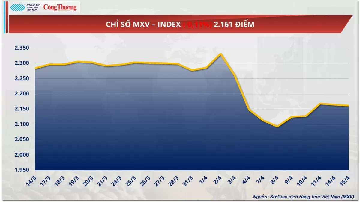 Theo Sở Giao dịch Hàng hóa Việt Nam (MXV), lực bán tiếp tục chiếm ưu thế trên thị trường hàng hóa nguyên liệu thế giới trong phiên giao dịch ngày hôm qua (15/4). Đóng cửa, chỉ số MXV-Index giảm nhẹ 0,1% về mức 2.161 điểm. Đáng chú ý, sắc xanh tiếp tục bao phủ thị trường kim loại khi thị trường kỳ vọng Mỹ sẽ sớm hạ lãi suất và tín hiệu tiêu thụ tích cực từ các ngành công nghiệp chủ chốt. Trong khi đó, giá đậu tương chịu ảnh hưởng từ hoạt động chốt lời sau các phiên tăng liên tiếp trước đó.