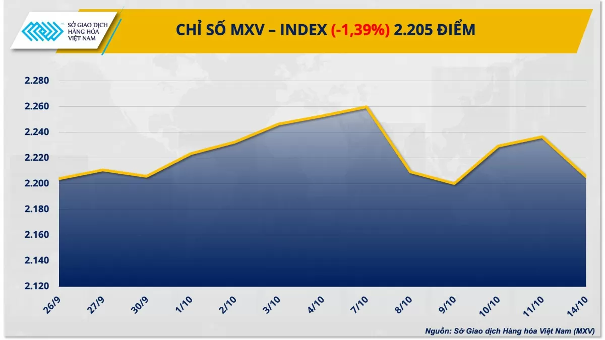 Theo Sở Giao dịch hàng hóa Việt Nam (MXV), lực bán tiếp tục áp đảo trên thị trường hàng hóa nguyên liệu thế giới trong phiên giao dịch đầu tuần (14/10).