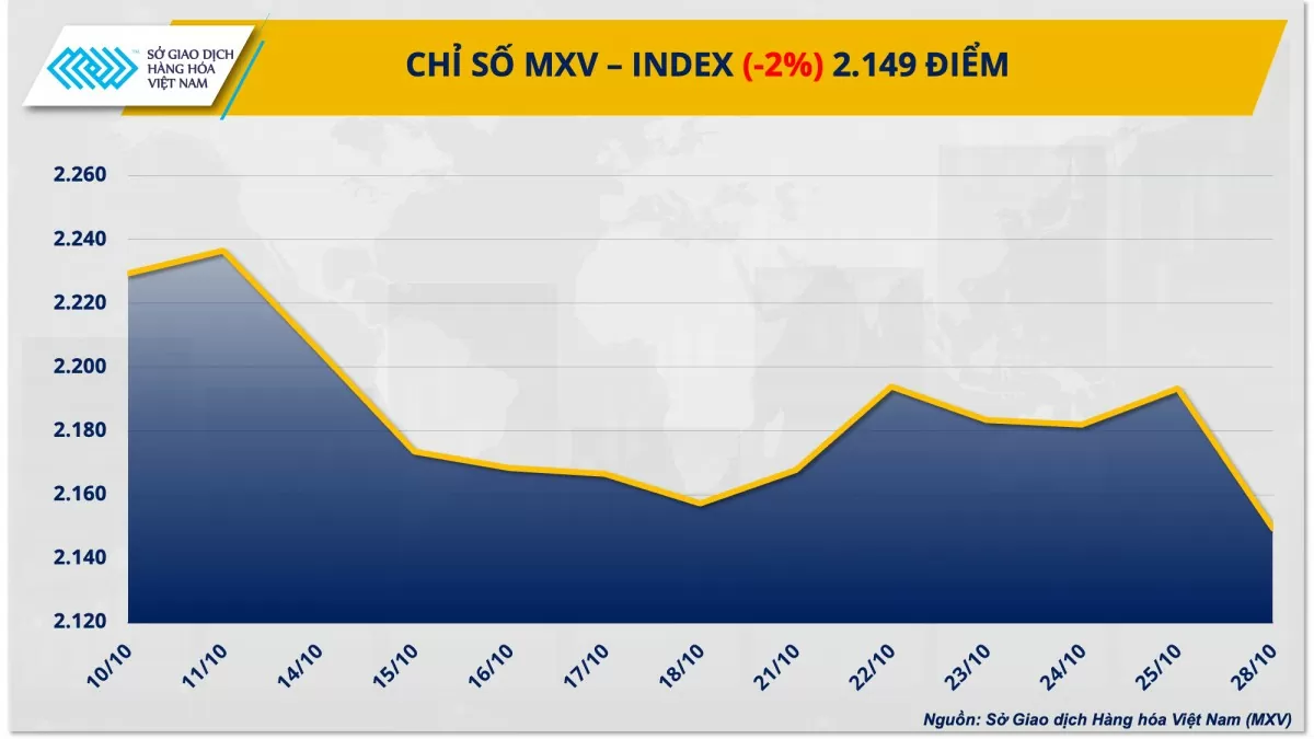 Thị trường hàng hóa hôm nay ngày 29/10: MXV-Index rơi xuống mức thấp nhất trong vòng hơn một tháng