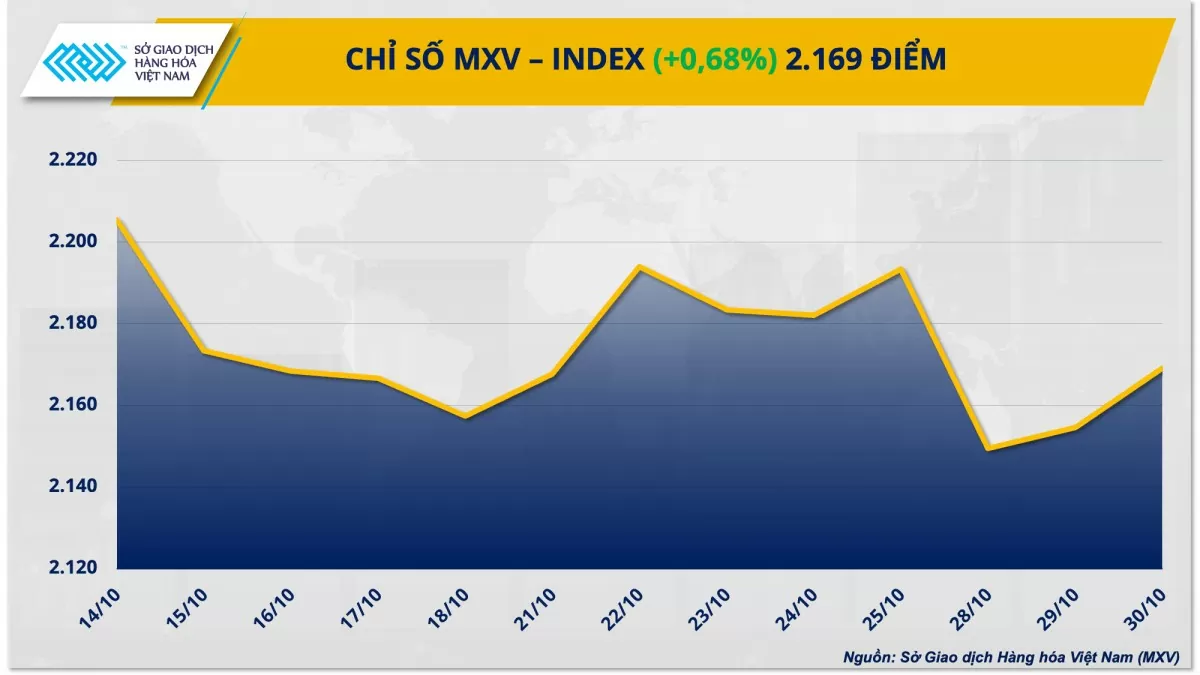 Sở Giao dịch Hàng hóa Việt Nam (MXV) cho biết, sắc xanh tiếp tục chiếm ưu thế trên bảng giá hàng hóa nguyên liệu thế giới trong phiên giao dịch hôm qua (30/10).