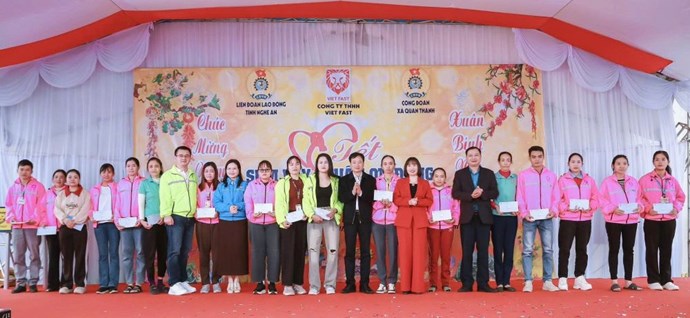 Ngày 2.2, Liên đoàn Lao động tỉnh Nghệ An cho biết, đơn vị vừa phối hợp với Công đoàn xã Quan Thành và Công ty TNHH VietFast tổ chức chương trình “Tết Sum vầy - Xuân ơn Đảng" 2026 trong không khí ấm áp, nghĩa tình, thắm đượm tinh thần đoàn kết.