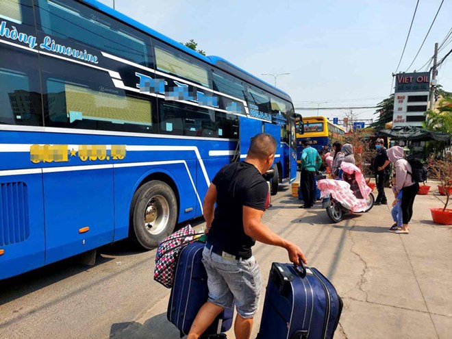 Trưa 22.1, tại khu vực đường Đỗ Mười (trước đây là Quốc lộ 1) thuộc TP Thủ Đức, nhiều hành khách mang hành lý lỉnh kỉnh ngồi chờ xe dưới bóng cây, trên các lề đường gần Khu chế xuất Linh Trung 1.