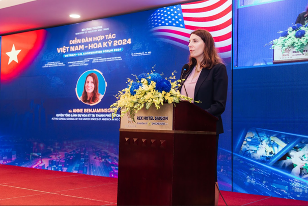 Bà Anne Benjaminson, Quyền Tổng Lãnh sự Hợp chúng quốc Hoa Kỳ tại TP. Hồ Chí Minh khẳng định mối liên kết chặt chẽ của hai nền kinh tế và vai trò ngày càng quan trọng của Việt Nam trong các chuỗi cung ứng/ chuỗi giá trị toàn cầu; đồng thời bày tỏ hy vọng quan hệ song phương sẽ bước lên tầm cao mới, ngày càng thực chất và hiệu quả vì sự thịnh vượng chung của cả hai quốc gia.