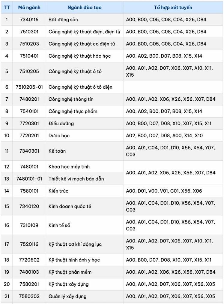 - Tổ hợp A01: Toán, Vật lý, Tiếng Anh