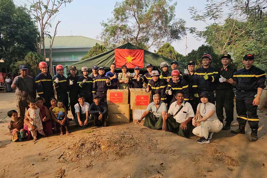 Đội cứu hộ Bộ Công an nhường nhu yếu phẩm cho người dân Myanmar