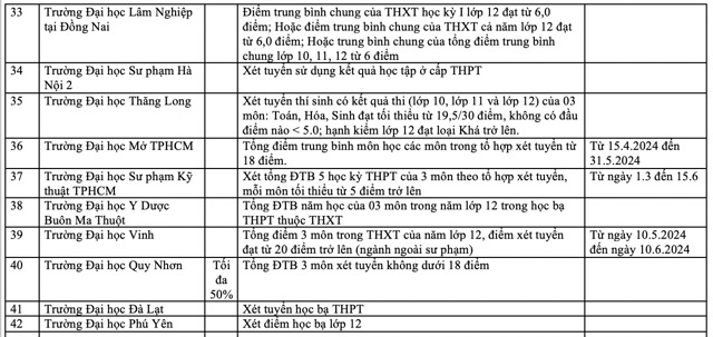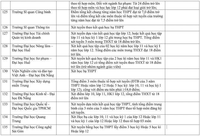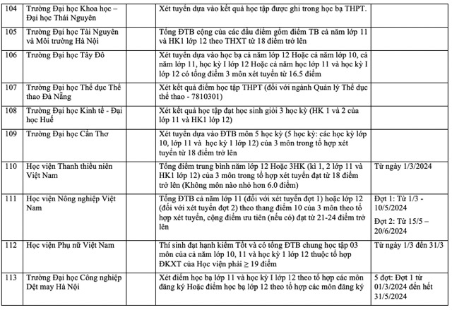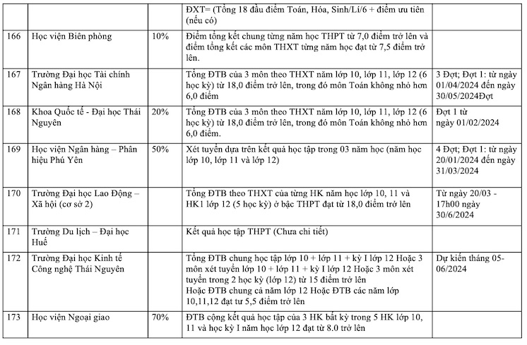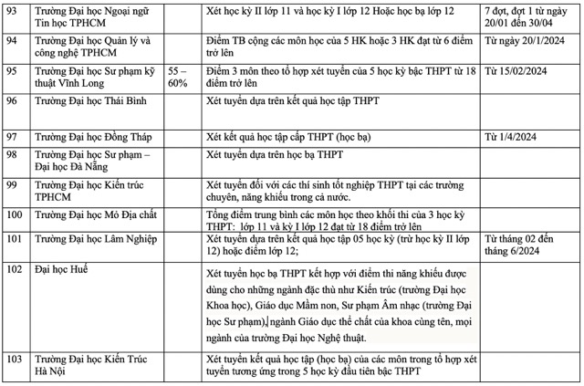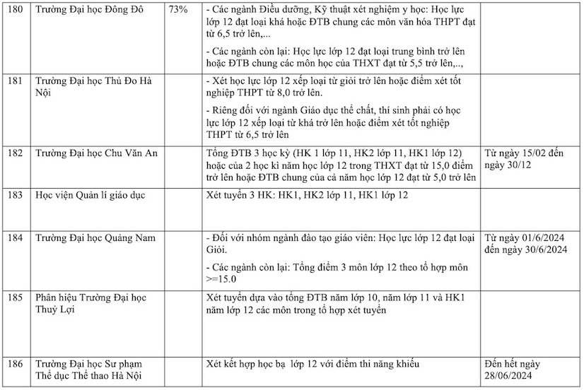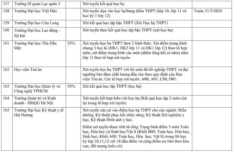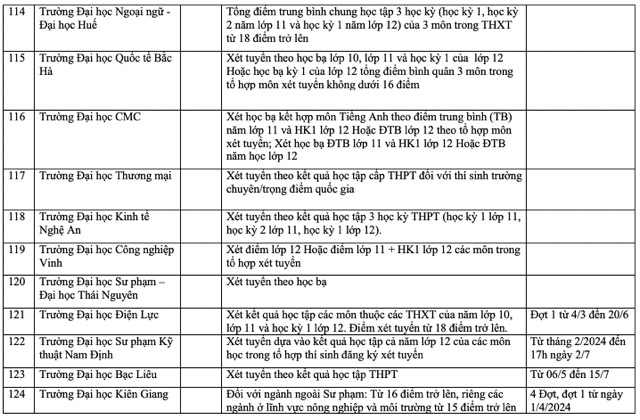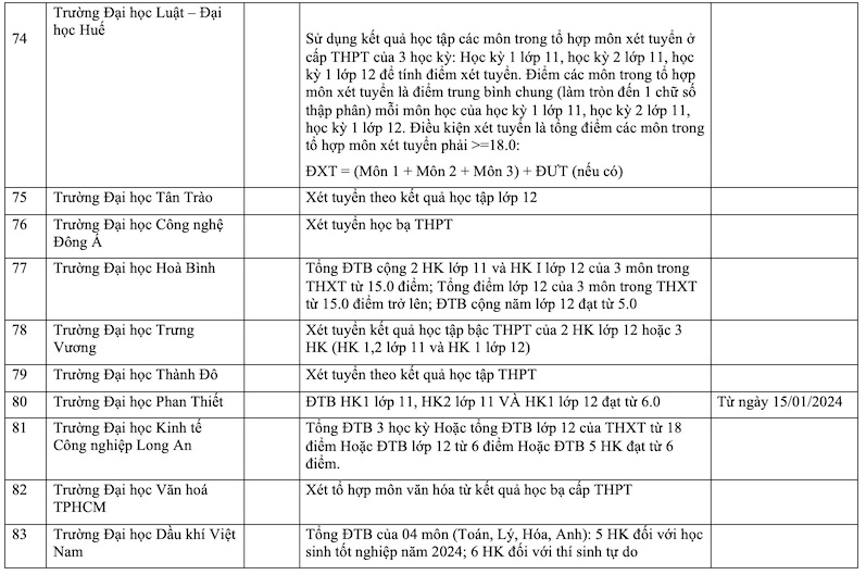 Thí sinh theo dõi danh sách các trường đại học công bố xét tuyển học bạ THPT năm 2024 theo bảng sau: