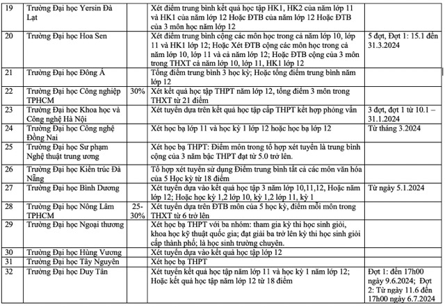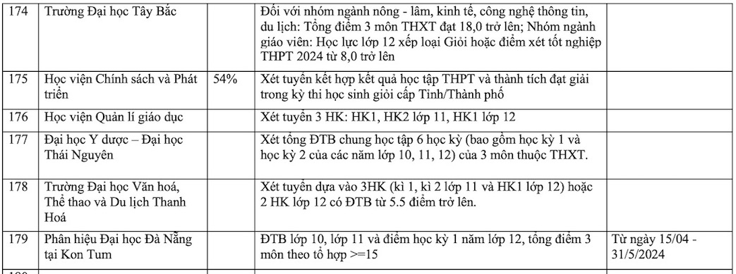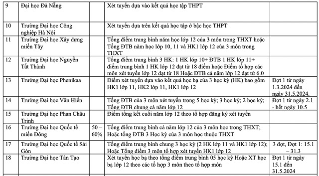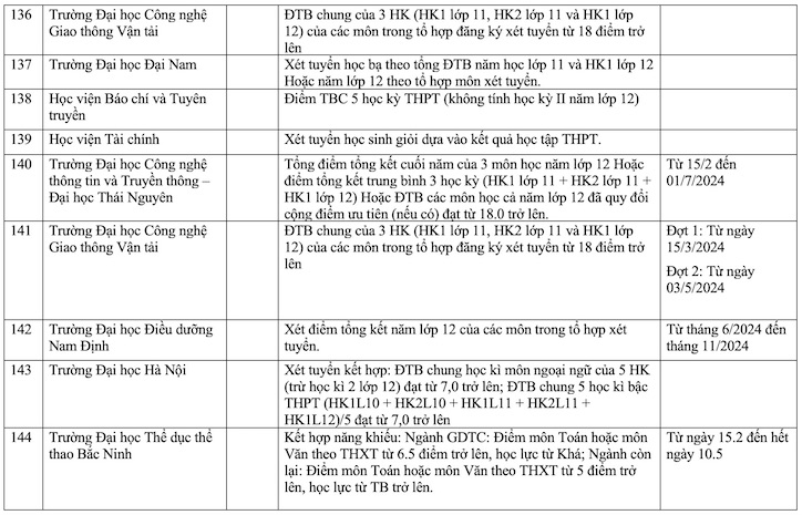 Danh sách các trường đại học xét tuyển học bạ THPT năm 2024.