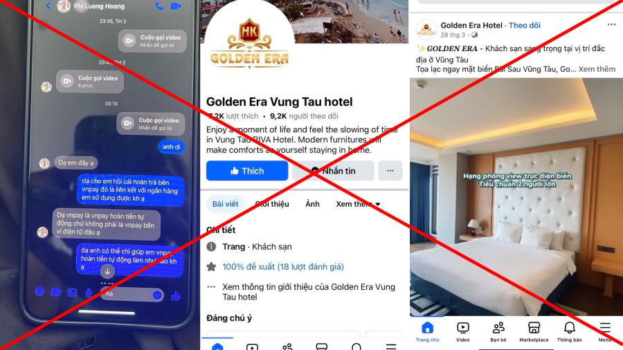 Anh Tuấn đặt phòng tại khách sạn có tên Golden Era Vũng Tàu qua website và fanpage trông rất chuyên nghiệp, chuyển khoản 1,5 triệu đồng tiền cọc. Đến khi biết mình bị lừa, anh liên hệ lại thì một người tự xưng "kế toán trưởng" xuất hiện, hứa sẽ hoàn trả đầy đủ. Người này gửi link và mã QR, yêu cầu anh nhập thông tin ngân hàng "để xác minh tài khoản", rồi liên tục thúc giục nộp thêm “phí mở khóa lệnh hoàn tiền", "phí bảo hiểm giao dịch", "phí ngân hàng quốc tế".