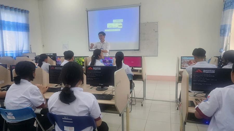 Giáo viên Trường THPT Trần Đại Nghĩa (Cần Thơ) hướng dẫn thí sinh đăng ký dự thi tốt nghiệp THPT năm 2025. |
