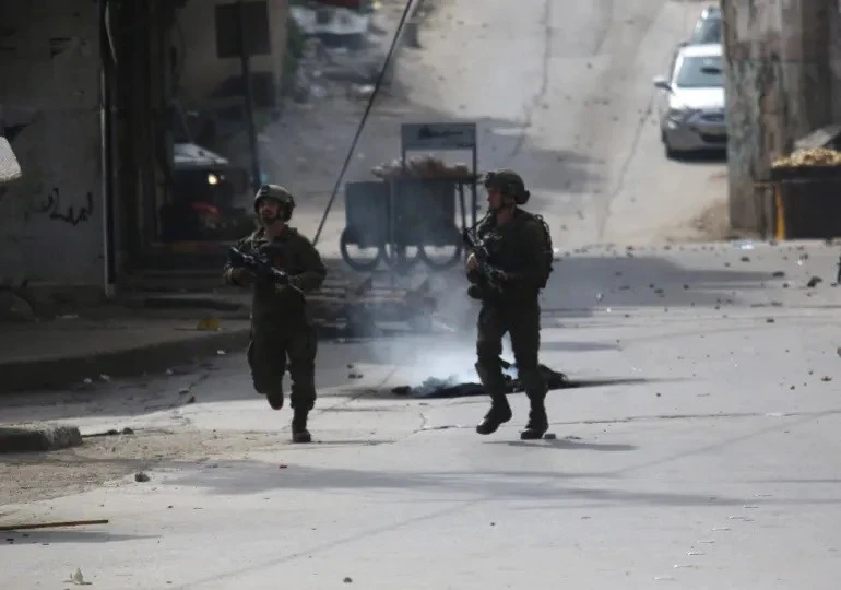 Lính Israel có vũ trang trong cuộc đột kích của quân đội Israel tại thành phố Nablus ở Bờ Tây bị chiếm đóng ngày 16/2. Ảnh: Majdi Mohammed/AP. |