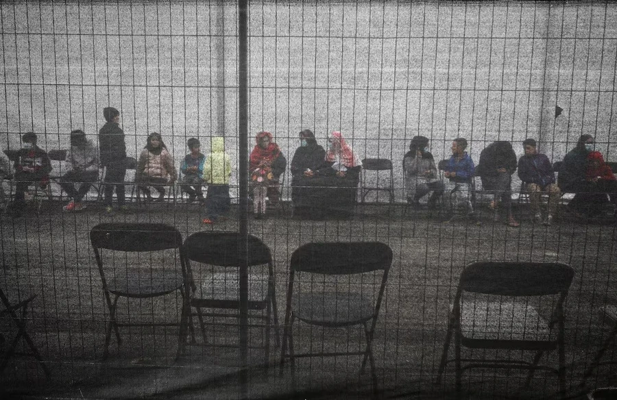 | Người tị nạn Afghanistan xếp hàng bên ngoài một trung tâm phân phối và quyên góp tại Liberty Village thuộc Căn cứ chung McGuire-Dix-Lakehurst ở New Jersey, Hoa Kỳ. Ảnh: REUTERS/Barbara Davidson. |